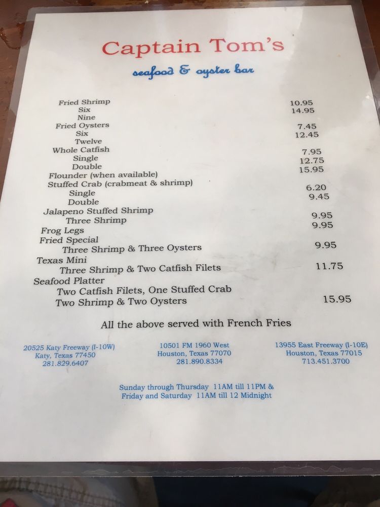 Captain Tom's Seafood and Oyster Bar Menu (Update 2025)